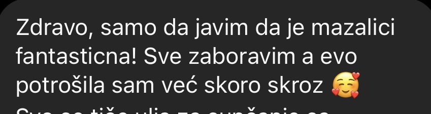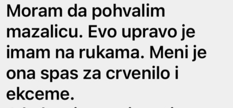 Proizvod bez koga nikako ne mogu je Mazalica sa mirisom aloja krastavac koje obavezno uzimam dve da imam u rezervi. Poseban je osećaj koji ostaje posle nje na koži.